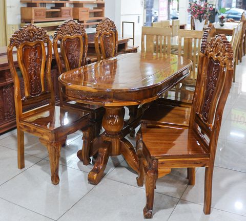 Bàn ăn gỗ tự nhiên-oval- 6 ghế: BTNV-816